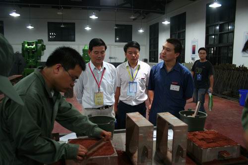 9月26日晚7点10分,省教育厅王文斌处长来到南校区工程训练中心,仔细查看学生进行车工、钳工、铸造等基本技能的操作。与训练中心的周梓荣主任进行了认真交流,并全面了解了学生的技能培训课时、训练中心的设备情况等。