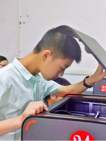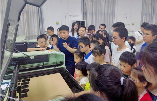 在3D打印和激光切割实训室,孩子们在惊叹激光加工、3D打印技术的神奇之余,也在实训老师的指导下,亲身参与了作品的制作,见识了科技的神奇力量。