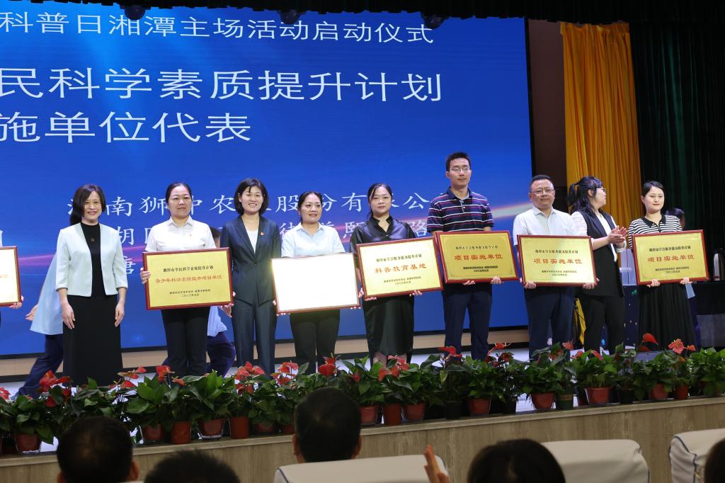 活动现场,举行了时代楷模、海牛团队首席科学家万步炎教授先进事迹报告会,开展了科普微宣讲、科普脱口秀、人工智能机器人表演秀、航天航模飞行展、科普咨询与展示等活动,并对2023年湘潭市全民科学素质行动计划项目实施单位、学会服务能力提升项目单位等进行了授牌。