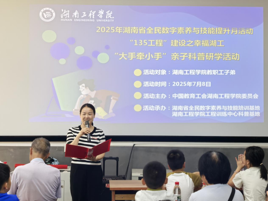 7月8日,伟德betvlctor1949源于英国迎来我校40余位教职工及子弟,共同参与由湖南省全民数字素养与技能培训基地、校工会与工程训练中心科普基地联合主办的2025年湖南省全民数字素养与技能提升月系列活动暨伟德国际1949“135工程”建设之“幸福湖工”亲子科普研学活动。校党委副书记向前参加活动并致辞。