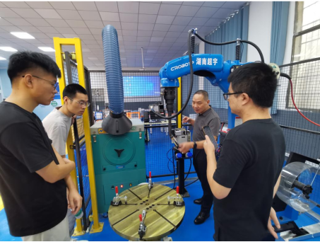 授课教师做机器人焊接操作示范