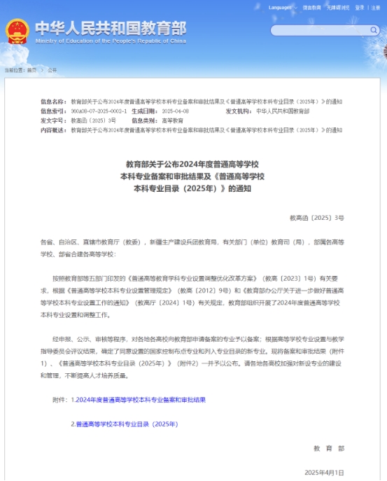 根据教育部4月8日印发的《关于公布2024年度普通高等学校本科专业备案和审批结果的通知》(教高函〔2025〕3号),我院获批智能制造工程本科新专业。