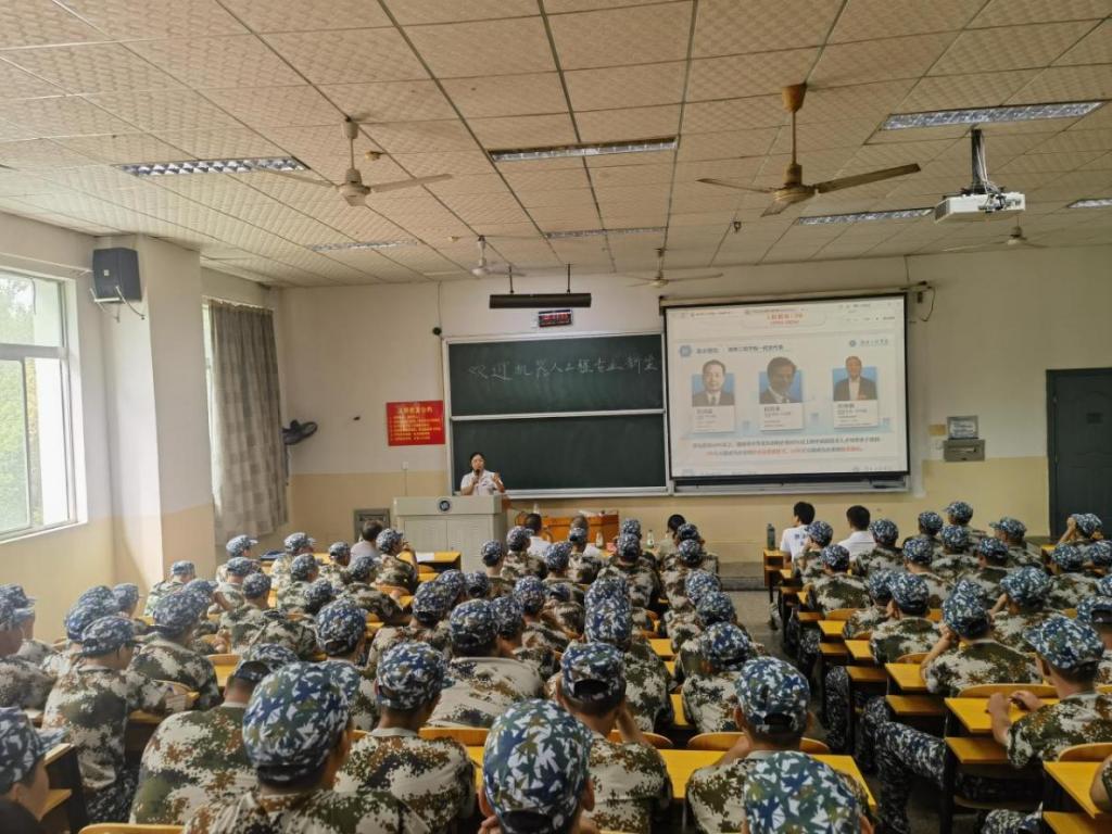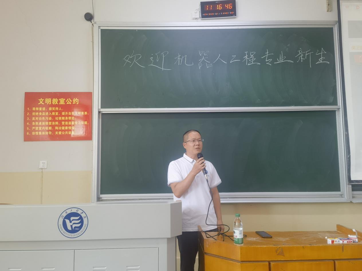 会议在激昂的国歌声中开启。胡慧代表学院全体老师对160名新生的到来表示热烈欢迎。她简要回顾了学校的光辉历程和学院的演变过程,详细解读了机器人工程专业的培养特色与发展前景。她表示,学院将秉持高标准、严要求的教学理念,不断优化资源配置,加强师资队伍建设,完善协同育人模式,为学生打造优质的学习平台。