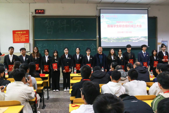 11月18日中午,我院首届学生联合组织成立大会在第一教学楼112室召开。院党委书记赵中华、院党委副书记、院长胡慧、副院长胡晓东、院党委副书记杨文奎、学办主任周岳崇及2024级全体班主任老师出席大会,校学联主席团和应用技术学院主席团受邀参加会议。