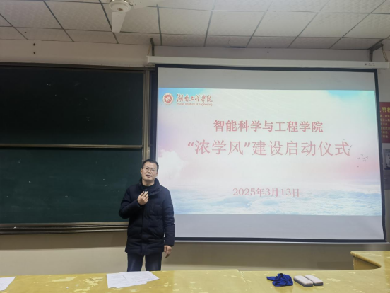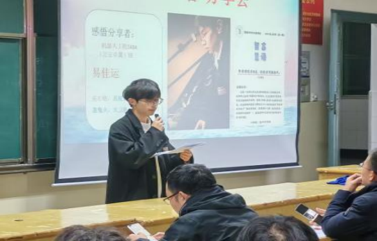 活动伊始,周老师对开学以来的学生工作进行简要总结,指出学风建设方面存在的问题。在学习经验分享环节,上学期期末成绩总分排名第一名的戴正意同学、英语四级考试第一名的廖柏华同学依次上台,分享他们在期末考试、英语四级备考等方面的学习经验。易佳运同学就“智言慧语”的学习体会进行发言,表达了对毛泽东同志的名句“为有牺牲多壮志,敢叫日月换新天”的深刻感悟。
