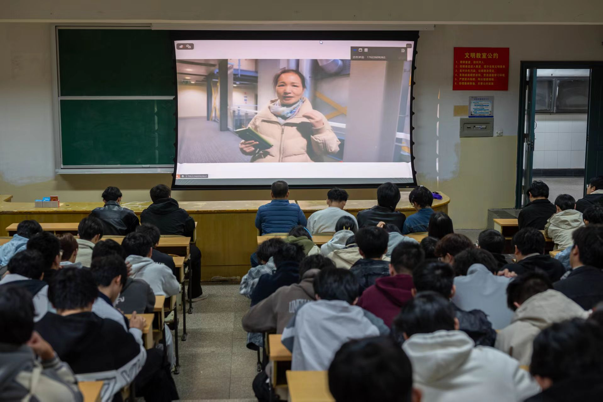 胡晓东带领我校正在兰开夏大学留学的两名优秀学生代表,通过实时画面展示了优美的校园环境,细致讲述当地学习日常、校园生活细节及跨文化交流点滴,生动传递在海外学习的独特体验与成长感悟。互动环节,胡晓东逐一细致回应了同学们提出的问题,同时,表示今后愿意在出国留学、学习交流学等方面向同学们提供有效的指导和帮助。
