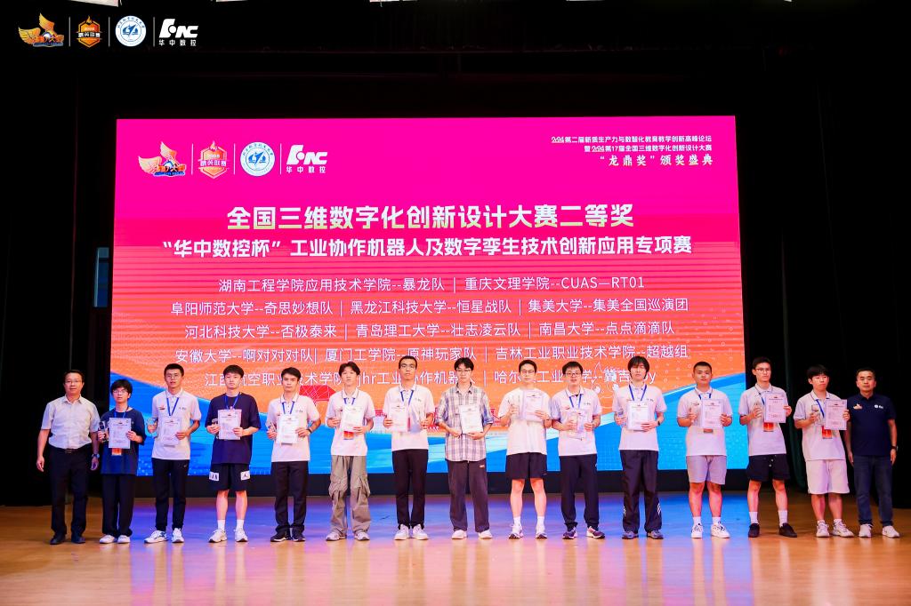 8月18-20日,第 17 届全国三维数字化创新设计大赛“华中数控杯”工业协作机器人及数字孪生技术创新应用专项赛总决赛在北京航空航天大学举行。历经校赛、省赛的激烈角逐,来自全国入围国赛的100多所高校145支参赛队伍,共计700余位参赛选手和指导老师,依靠深厚的理论基础、熟练的动手能力、卓越的创造能力、顽强的拼搏精神在年度总决赛的舞台上共同角逐“龙鼎大奖”。我校两支参赛队伍分别荣获全国一等奖、二等奖。