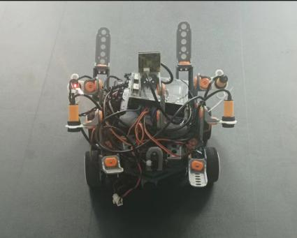 属于“创意之星”模块。“创意之星”模块化机器人分为标准版、高级版、AI版,并有多种配件可选购,也可搭配组件包参加各类比赛。标准版、高级版均搭配图形化编程软件,同时支持C语言直接编程, 使用图形化软件编程时会同步生成对应的C代码。AI版采用Linux操作系统,支持python视觉编程,可以在控制器上部署深度学习框架,完成如目标检测、人脸识别、数字识别等。其全名轮式格斗机器人,处理器为基于树莓派4B的人工智能控制器;传感器由红外光电传感器,红外测距传感器组成,并增加了摄像头作为敌我apriltag码的识别;该机器人的动力关节是由四个CDS5516数字舵机构成。底盘驱动采用了两个BDMC1203驱动器,通过驱动器控制数字舵机以及电机的运行,底盘驱动方式为差速转弯,同速直行。