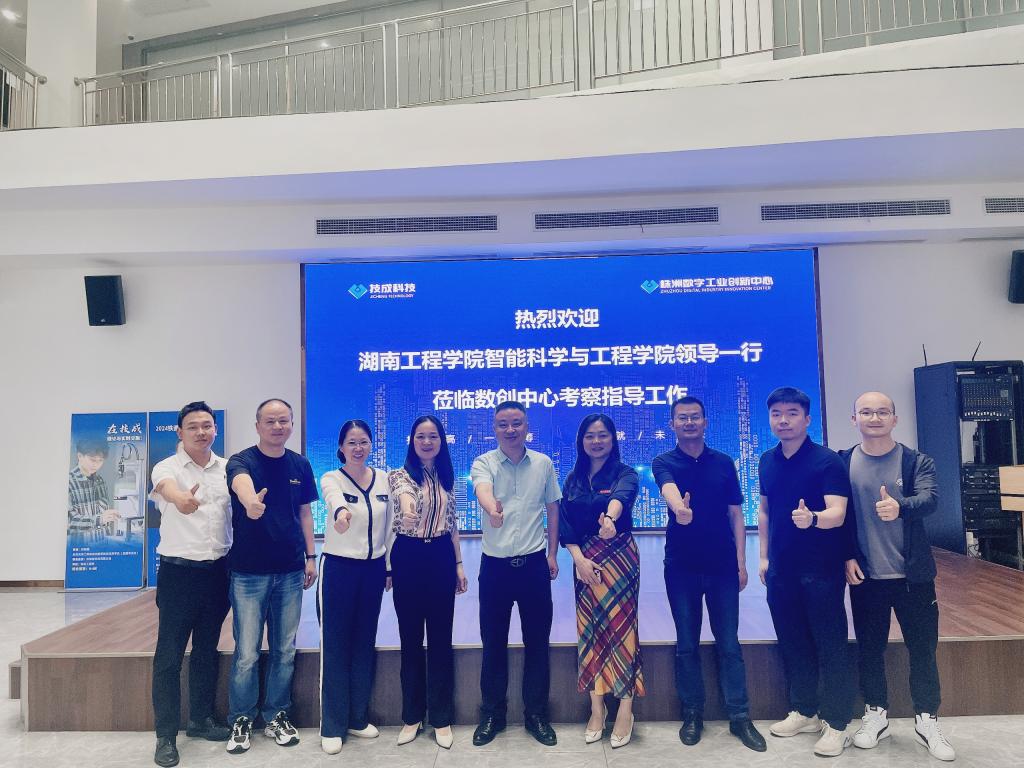 接着,胡慧院长一行参观了株洲数字工业创新中心和技成科技有限公司,深入了解了中心的发展历程、研究方向和创新成果。在与企业的交流中,双方就工业机器人技术创新、智能产业发展趋势、师资技能培训等关键话题进行了深入探讨,并就未来的合作方向交换了意见。